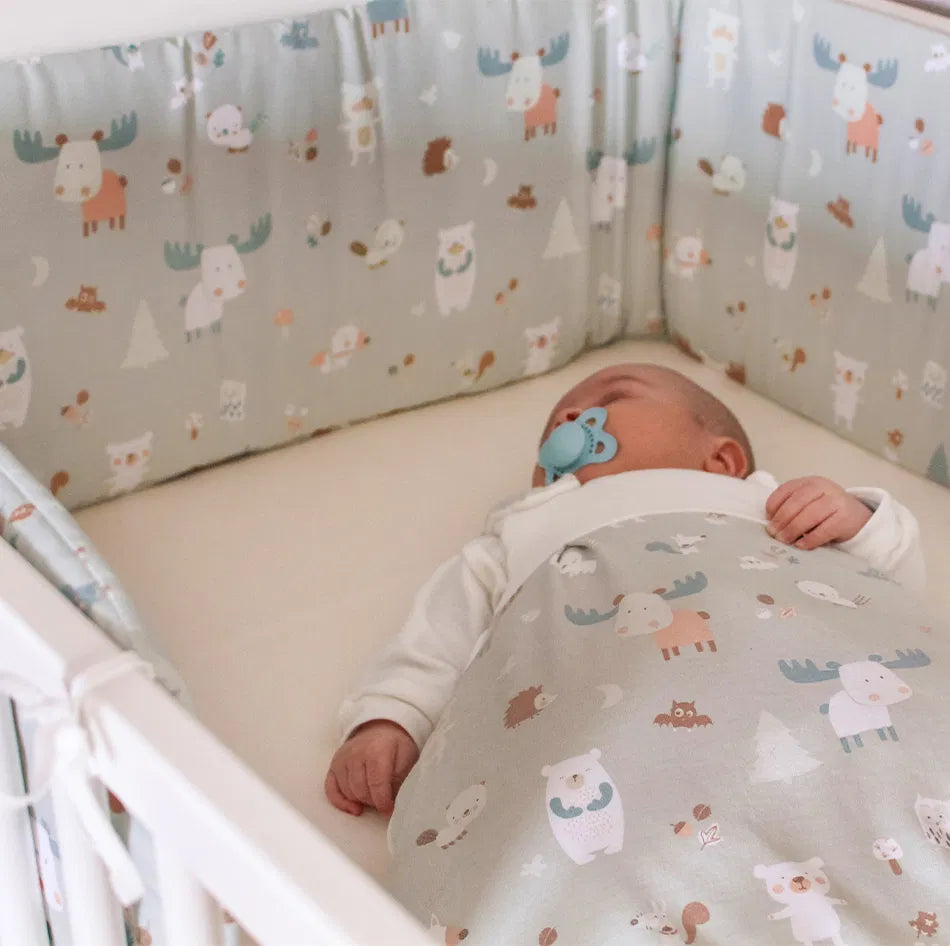 Das klassische Nestchen wird direkt am Babybett befestigt und schützt dein Baby vor Stößen an den Gitterstäben.