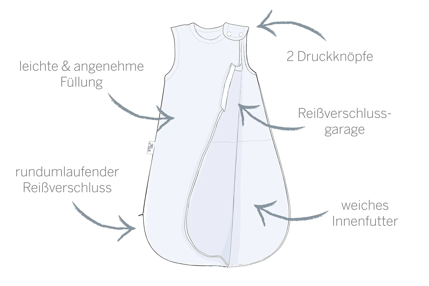 Wähle den Schlafsack, der zu deinem Baby passt, und genieße höchsten Schlafkomfort in jeder Saison.