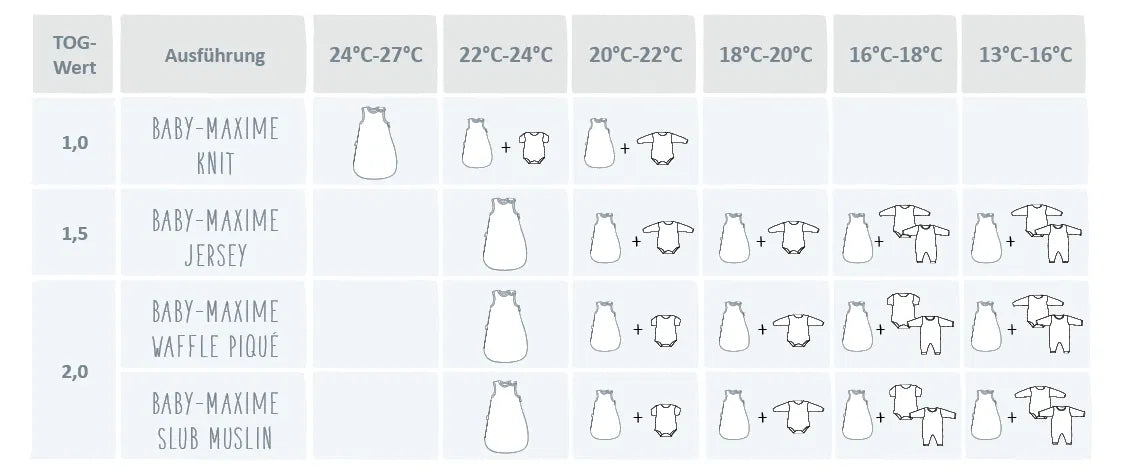 Mit unserer TOG-Tabelle zur perfekten Schlafsack-Kombi