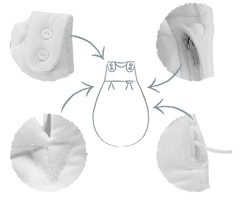 Höchster Komfort auch für Babys die zu Beginn ihres Lebens noch etwas mehr Aufmerksamkeit benötigen und in der Klinik oder zuhause per Kabel überwacht werden