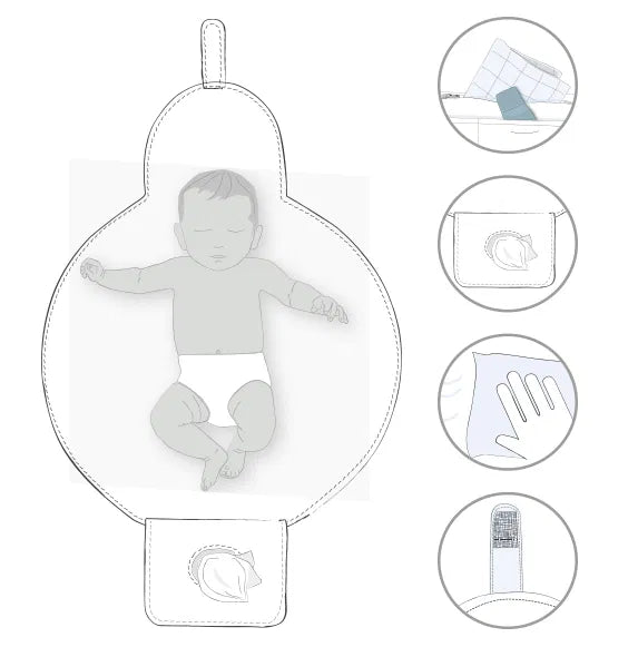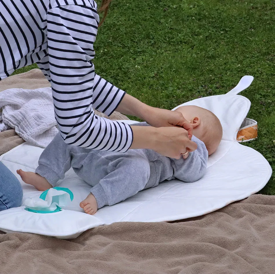 Mit diesem praktischen Begleiter von ALVI bist du auch unterwegs bestens ausgestattet. Die zusammenfaltbare Wickelunterlage lässt sich durch einen Tragegriff und den vernähten Klettverschluss einfach transportieren.